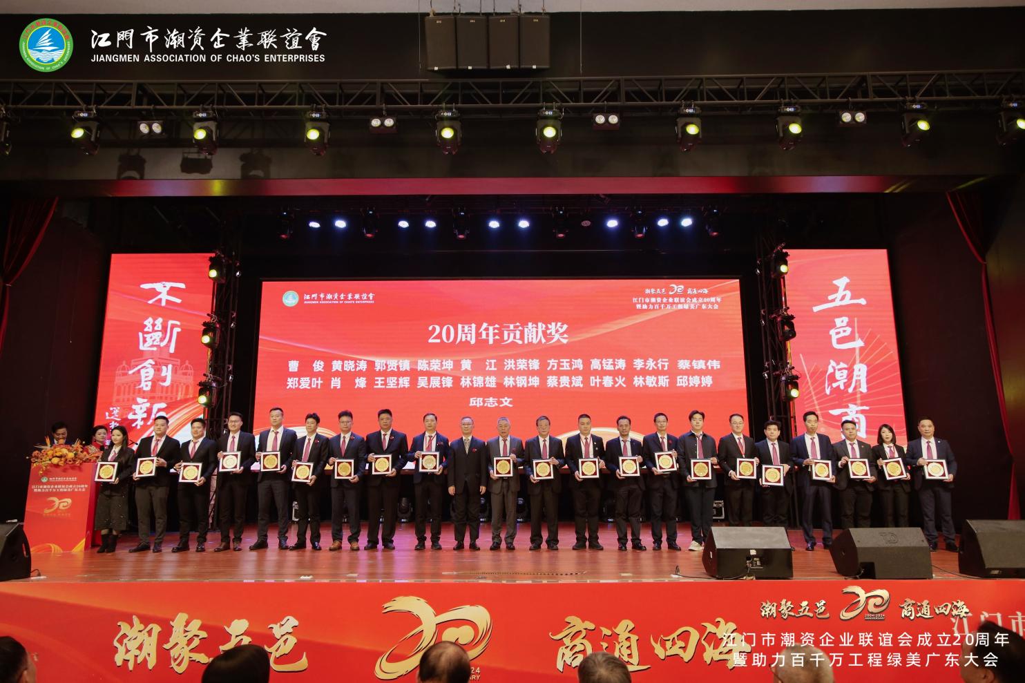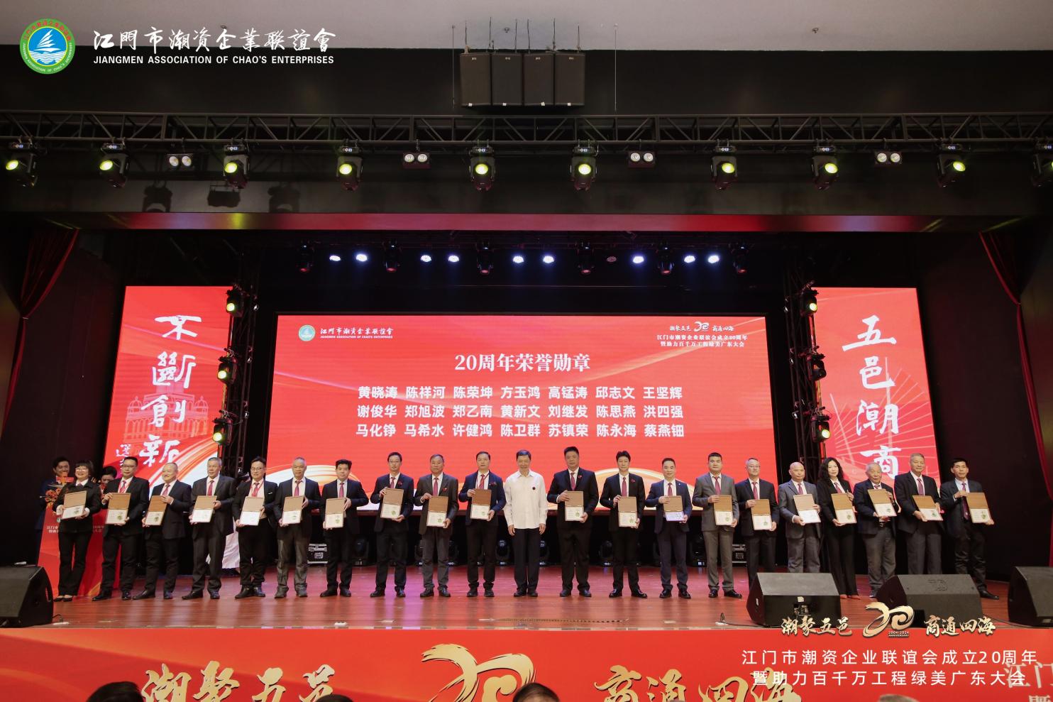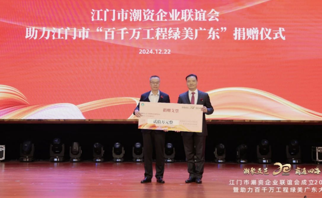 El 22 de diciembre de 2024 es un día memorable, ya que la Asociación de Empresas de Jiangmen Chaozhou celebró una gran celebración del vigésimo aniversario y una conferencia de la Iniciativa Verde de Guangdong en el Salón Internacional de Banquetes Fang Yuxuan. Con el tema 'Reuniendo talentos de Chaozhou en Wuyi, conectando el comercio a través de los cuatro mares', el evento reunió a ex líderes originarios de Chaozhou, dignatarios de Jiangmen, Hong Kong, Macao y las cuatro ciudades de Chaoshan, así como a élites. de los sectores empresarial, financiero, cultural y mediático, para ser testigos de este momento histórico.