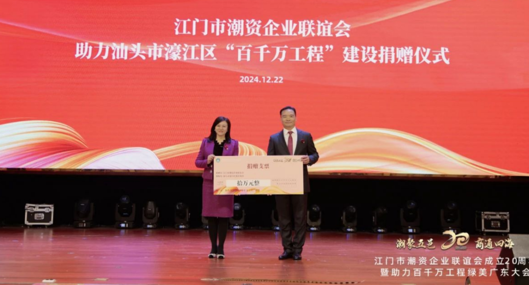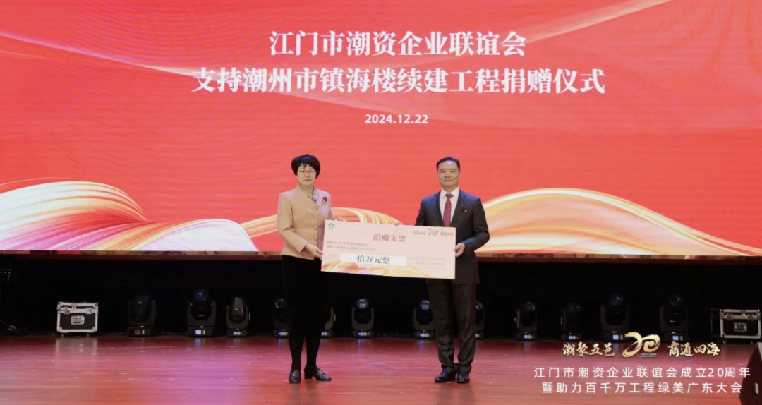 En la ceremonia de donación, la Asociación de Empresas financiada por Jiangmen Chaozhou demostró su responsabilidad social y espíritu caritativo a través de acciones concretas. Donó 200.000 yuanes a la iniciativa 'Cien, mil y diez mil proyectos' de Guangdong verde y hermoso, contribuyendo a la mejora del entorno ecológico y la calidad de vida de los residentes en la provincia de Guangdong. Además, donó 100.000 yuanes al proyecto de continuación de la Torre Zhenhai en Chaozhou y otros 100.000 yuanes a los Proyectos Cien, Mil y Diez Mil en el distrito de Haojiang.