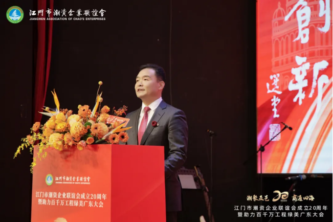 Liu Yiliang, vicepresidente de la Federación Nacional de Chinos de Ultramar Retornados, miembro del Sexto Consejo Ejecutivo de Macao, presidente honorario vitalicio de la Federación Internacional de Organizaciones Comunitarias de Chaoshan y presidente de la Federación de Organizaciones Comunitarias de Chaoshan en Macao, afirmó que los últimos veinte años han sido años de lucha y esfuerzo, de innovación y desarrollo y, lo más importante, de fomentar el sentimiento de pueblo natal y retribuir a nuestra tierra ancestral. Jiangmen, como reconocida ciudad natal de chinos de ultramar, cuenta con un profundo patrimonio cultural y un entorno empresarial superior. Las empresas financiadas por Chaozhou se han arraigado aquí y han prosperado, inyectando un fuerte impulso a la prosperidad económica de Jiangmen. La asociación ha jugado un papel insustituible como puente y vínculo en este proceso. Desde la manufactura hasta los servicios, desde las industrias tradicionales hasta los sectores tecnológicos emergentes, las empresas financiadas por Chaozhou están en todas partes y, con su agudo conocimiento empresarial y su coraje pionero, se han labrado un vasto territorio en esta tierra de Jiangmen. Dijo que Macao y Jiangmen comparten proximidad geográfica y estrechos vínculos personales, y que las organizaciones y empresas comunitarias de Chaoshan en ambos lugares deben aprovechar la oportunidad para explorar conjuntamente más modos de cooperación y promover la circulación de capital, tecnología, talento y otros elementos esenciales. contribuyendo así a la construcción de la Gran Área de la Bahía de Guangdong-Hong Kong-Macao.